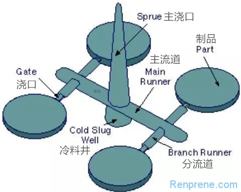 因?yàn)橹髁鞯朗请x注塑噴嘴近的位置,螺桿注塑施加的壓力大,導(dǎo)致此區(qū)域材料收縮小,由此材料與澆口內(nèi)壁要滑動(dòng)就產(chǎn)生了更大的摩擦力。